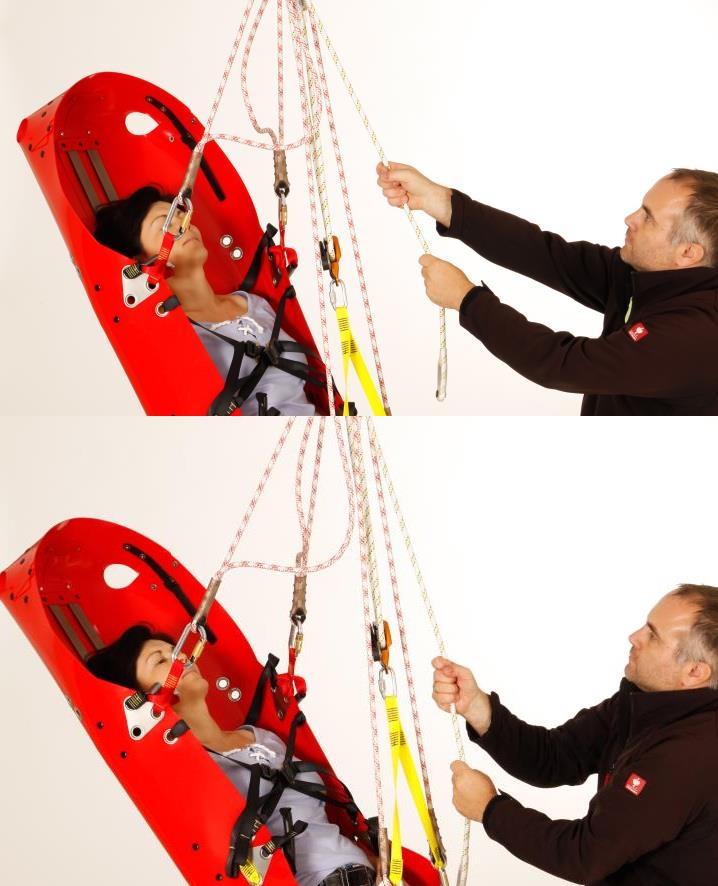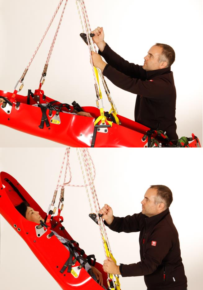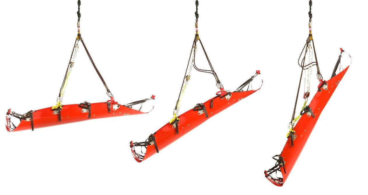 Ayarlanabilir sedye bağlantı aparatı, sedyenin yük altındaki konumunun dikey ve yatay arasında değiştirilebilmesini mümkün kılar ve 4 noktadan sedyeye bağlanır. Bu özellik, kazazedenin nakli sırasında sedyenin konumunun değiştirilmesi gerektiğinde faydalı olabilir. Diğer askı aparatlarının aksine, bu işlem yük altında da yapılabilir – kayışları boşaltmak (gerilimsiz) amacıyla pozisyonu değiştirmek için hastanın yere indirilmesi gerekmez.