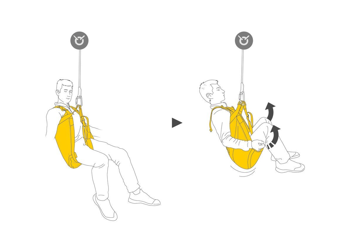 Ergonomik şekil, tahliye edilen kişinin üçgene kolayca oturmasını sağlar ve süspansiyonu klasik tahliye üçgenine göre daha rahat hale getirir